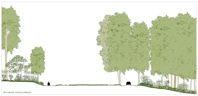 Replantation de l'allée du "Tapis Vert" du parc de Saint-Cloud. Hauts-de-Seine, France.